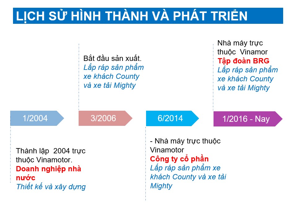 Sau khi hoàn tất xây dựng và lắp đặt dây chuyền đồng bộ hiện đại nhất từ HMC, Nhà máy ô tô Đồng Vàng bắt đầu đưa ra thị trường những sản phẩm xe tải Hyundai Mighty và xe khách 29 chỗ Hyundai County đầu tiên lắp ráp tại Việt Nam và luôn được đánh giá là sản phẩm chất lượng nhất trong các dòng xe thương mại mang thương hiệu Hyundai lắp ráp trong nước. Từ đó đến nay, nhà máy liên tục theo sát công nghệ của HMC để nâng cao trình độ của đội ngũ nhân lực, không ngừng cải thiện năng lực sản xuất cũng như phát huy sáng tạo và thúc đẩy tỉ lệ nội địa hóa, khẳng định được thương hiệu và chỗ đứng vững chắc tại thị trường Việt Nam.